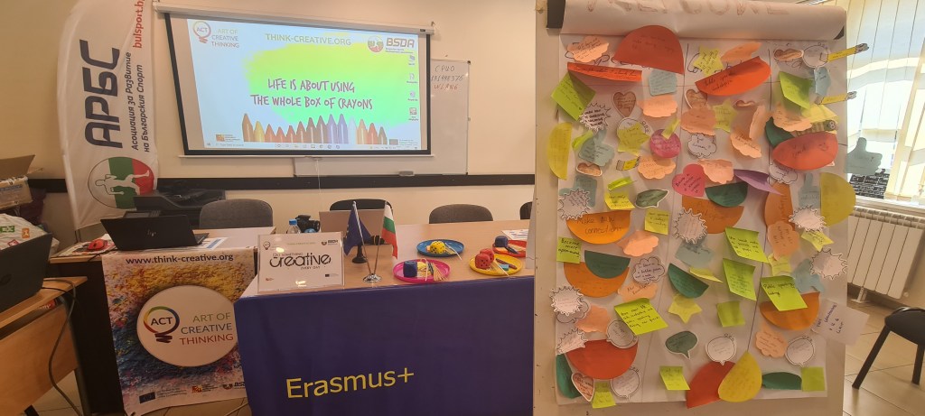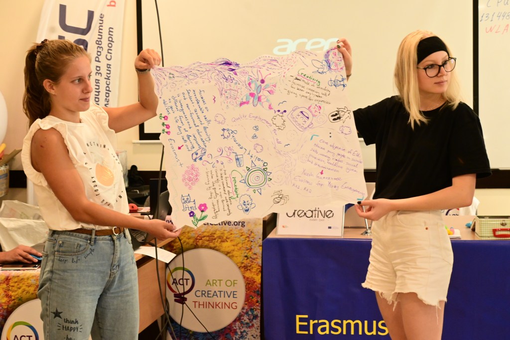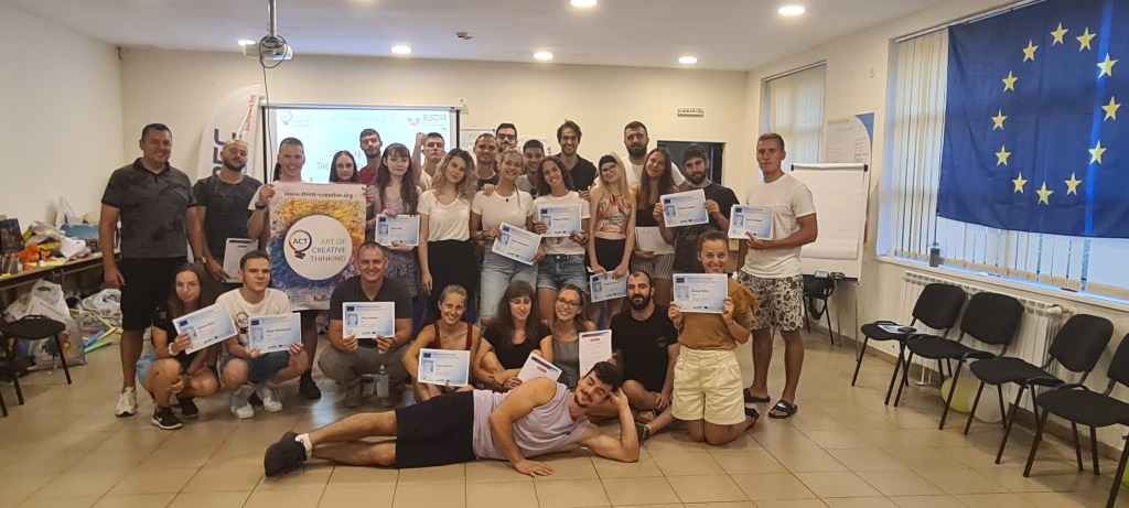 In the period 14.08.2021 – 21.08.2021 an international training course Art of creative thinking ACT has been implemented in Sofia. The event gathered together participants from Bulgaria, Bosnia and Herzegovina, Cyprus, Hungary, Italy, Serbia and Slovakia, working with and for the young people in their countries. Art of creative thinking ACT is mobility for youth workers, co-financed on the program Erasmus+ of the European Union (training course), which will work for acquiring one of the most valuable skills of the future – the creative thinking and how it appears and develops in the young people, as it is one of the new skills, which employers search for and it is hard to acquires through the formal education system.
